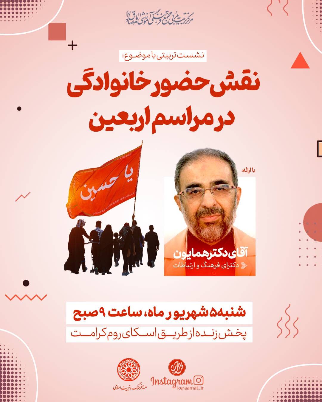 نشست تربیتی با موضوع «نقش حضور خانوادگی در مراسم اربعین» روز شنبه ۵ شهریورماه ۱۴۰۱ ساعت ۹ صبح برگزار شد.