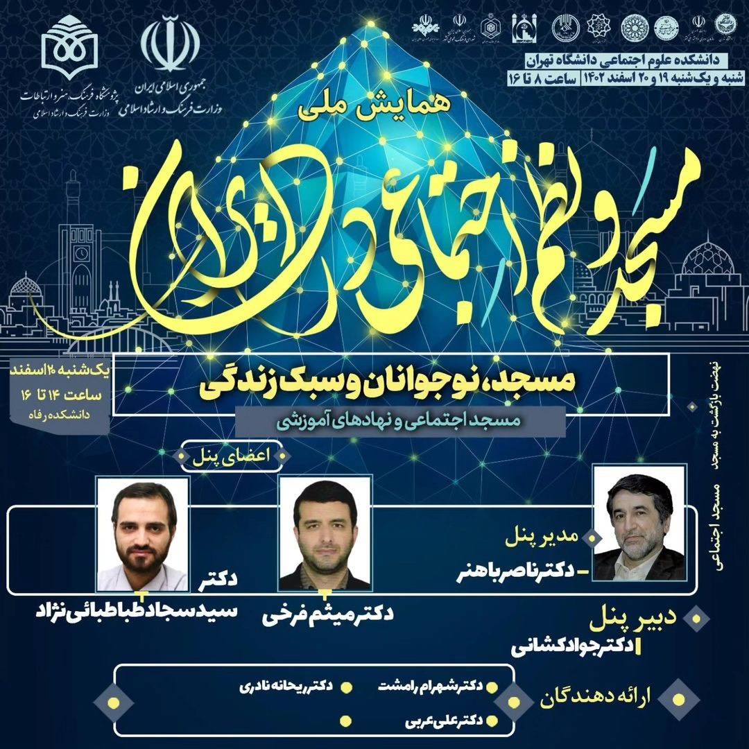 روز یکشنبه ۲۰ اسفند ۱۴۰۲، همایش ملی «مسجد و نظم اجتماعی در ایران» با محوریت موضوع «مسجد، نوجوانان و سبک زند...